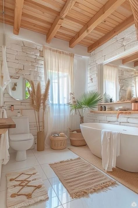 A Bright and Airy Botanical Escape A Tropical Rainforest Retreat Turn your bathroom into a mini rainforest with the lush beauty of tropical plants. A monstera plant stands proudly near the bathtub, its large leaves creating a bold statement. Areca palms and hanging ferns thrive in the humid environment, while a bamboo shower mat enhances the natural, spa-like feel. The sound of running water blends with the fresh, earthy scent of greenery, creating a transportive experience. Whether it’s a warm morning shower or a nighttime soak, this bathroom makes you feel like you're bathing in the heart of nature.