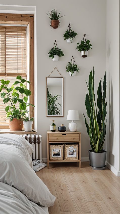 Add a touch of green serenity to your bedroom with the soothing presence of indoor plant.