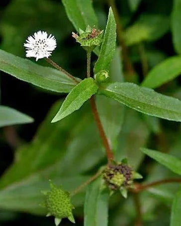 Bhringraj – the king of herbs for hair and health! With its soft green leaves and tiny white flowers,