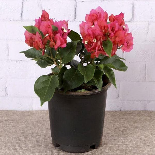 The Bougainvillea (Red) is a stunning tropical plant known for its vibrant, paper-like bracts that bloom in a rich crimson hue. This hardy, drought-resistant plant thrives in warm climates, making it a popular choice for gardens, patios, and balconies. With its ability to climb and spread, it adds a touch of exotic beauty to any landscape.