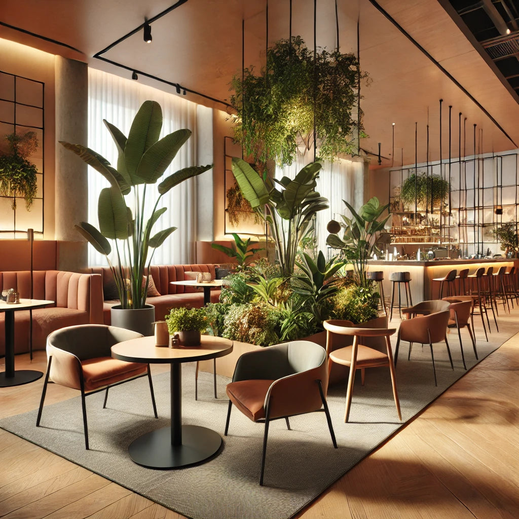 Outdoor Cafés: A Natural Retreat For cafés with outdoor spaces, plants are essential in creating a comfortable and inviting environment. Large potted plants, bamboo dividers, and hanging baskets can define the space and add a sense of privacy. Flower-filled planters bring color and vibrancy, while climbing vines on trellises provide a cozy, shaded retreat. With the right plant selection, an outdoor café can feel like a garden sanctuary, making customers want to linger longer over their coffee and conversations. PLANTS  ;PARDA VALLI,MONEY PLANT,DIFFENBACHIA,ARECA PALM,,ZZ,SYNGONIUM,FERNS,AGLONIMA,PEACE LILY,MONSTERA,MOR PANKI,PENCIL PINE,EXORA,JADE,CROTONSADA BAHAR,OFF TIME,HANGING PLANTS,SPIDER,BAMBOO ALL IMPLEMENTATION WILL BE DONE