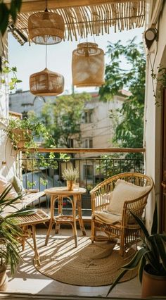 CANE FURNITURE WITH CANE LAMPS,A Balcony Oasis: Your Private Green Escape