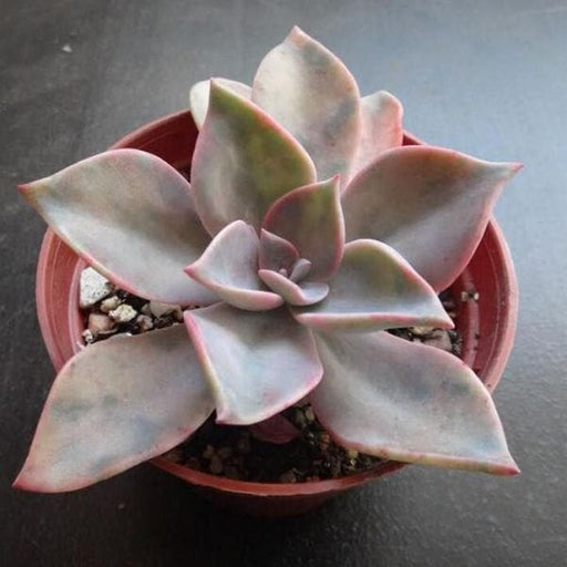 Graptoveria Douglas Huth : Echeveria hybrid. Stemless, clump-forming rosettes with thick gray-green leaves. Shades of pink or burgundy when stressed. Easily grown in average, evenly moist, well-drained soils in full sun. Plants spread by rhizomes and can spread aggressively in the garden. Plants may self-seed in the garden. Propagate by seed or by division.