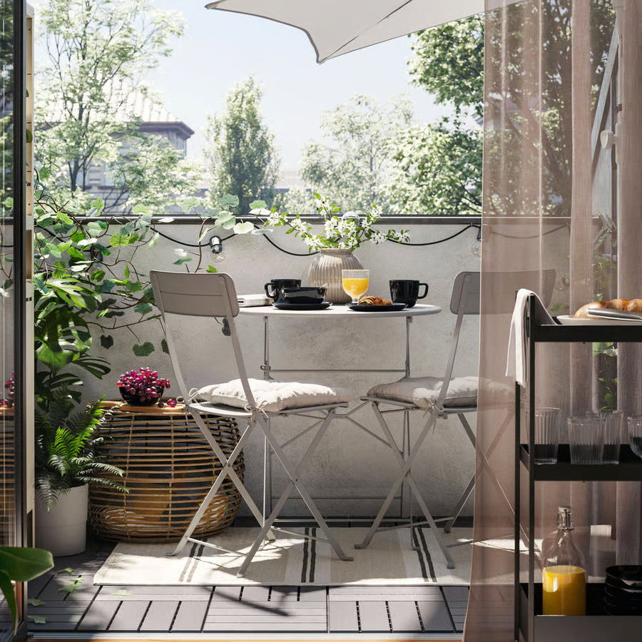 "Set the mood with a balcony designed for romance. Soft lighting, comfortable seating, and a touch of nature create the perfect atmosphere for intimate moments. Whether it’s a quiet dinner or a starlit evening, your balcony will become a place for love and connection." Following plants will be included in the design shown; SPIDER MONEY ZZ PLANT ARECA PALM MONSTERA SNAKE FIDDLE LEAF FIG ARECA PALM RUBBER PLANT JADE PLANT Dieffenbachia seguine Plant Charges will include all implementation/excecution services viz a viz Gardener,color,carpenter,ms fabrication,plumber Its loveforplants.in’s perogative on quantity of each plant to be taken because size,quantity of each plant will depend on availability . This design and its execution is  available in selected city of india