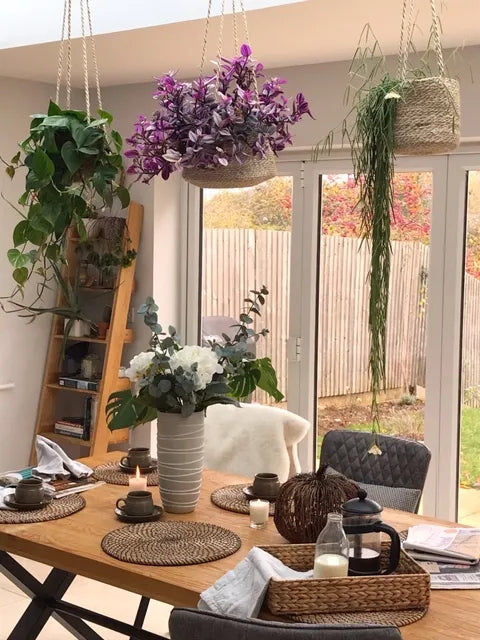 Bring a touch of greenery and elegance to your reception area with our hanging baskets filled with lush plants. Perfect for adding height, dimension, and visual interest, these hanging arrangements create a welcoming and refreshing atmosphere for visitors and staff alike. Easy to maintain and visually appealing, the plants in these baskets enhance air quality while adding natural beauty to desks, corners, or entryways. Ideal for modern interiors, they transform ordinary reception spaces into vibrant, lively, and inviting environments.