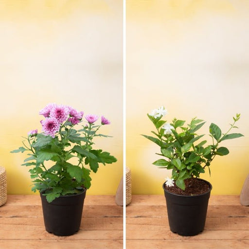 Transform your garden into a fragrant paradise with our exclusive Fragrant Beauties Pack. This delightful collection features two enchanting plants: the vibrant Shevanti (Chrysanthemum) and the aromatic Mogra (Arabian Jasmine). Each plant comes in a 5-inch pot, making them perfect for both indoor and outdoor spaces. Their captivating scents and stunning blooms will not only enhance your garden's beauty but also uplift your mood.
